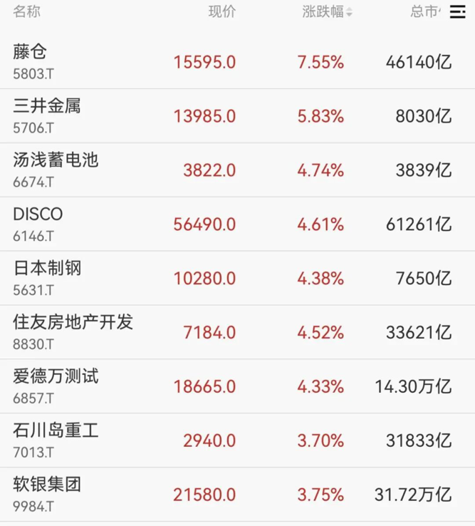 个股方面,藤仓大涨超7%,爱德万测试、软银集团、DISCO等跟涨。