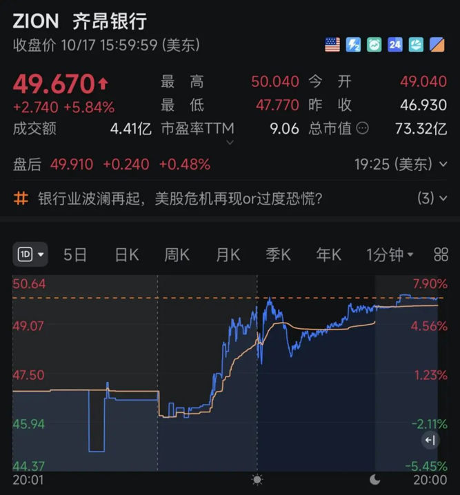 周五Zion银行收高5.8%,有“华尔街恐慌指数”之称的Cboe波动率指数(VIX)稳步下降。