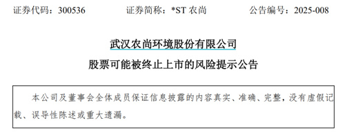 *ST农尚称,若公司2024年度报告披露后出现交易所规定所述十种情形之一的,公司股票将面临被终止上市的风险。