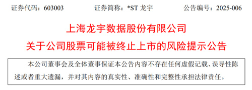 *ST龙宇1月24日晚公告,公司因2023年度被出具无法表示意见的《2023年度审计报告》及否定意见的内部控制审计报告,公司股票自2024年5月6日起被实施退市风险警示及其他风险警示。