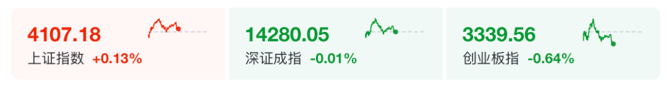 1月19日上午,A股三大股指涨跌不一。截至午间收盘,沪指报4107.18点,涨0.13%,深证成指跌0.01%,创业板指跌0.64%。