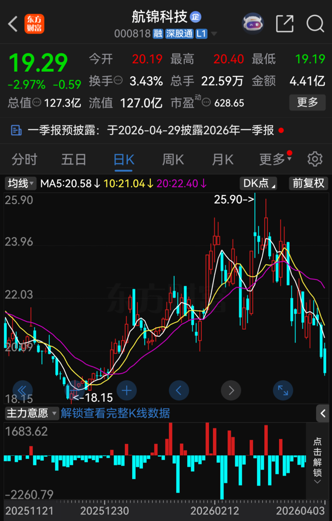 截至4月3日收盘,航锦科技股价报19.29元/股,跌幅达2.97%,总市值为127.3亿元。截至2025年9月30日,航锦科技的股东人数达12.41万户。