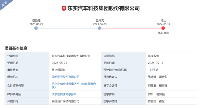 2023年5月,东实股份披露招股书,拟冲击深交所主板上市。不过,2024年5月,公司主动撤回了IPO申请。