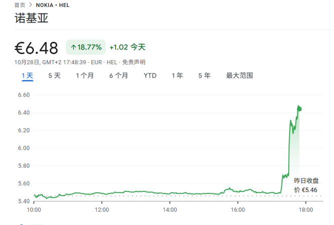 消息出来之后,诺基亚股价暴涨近20%!