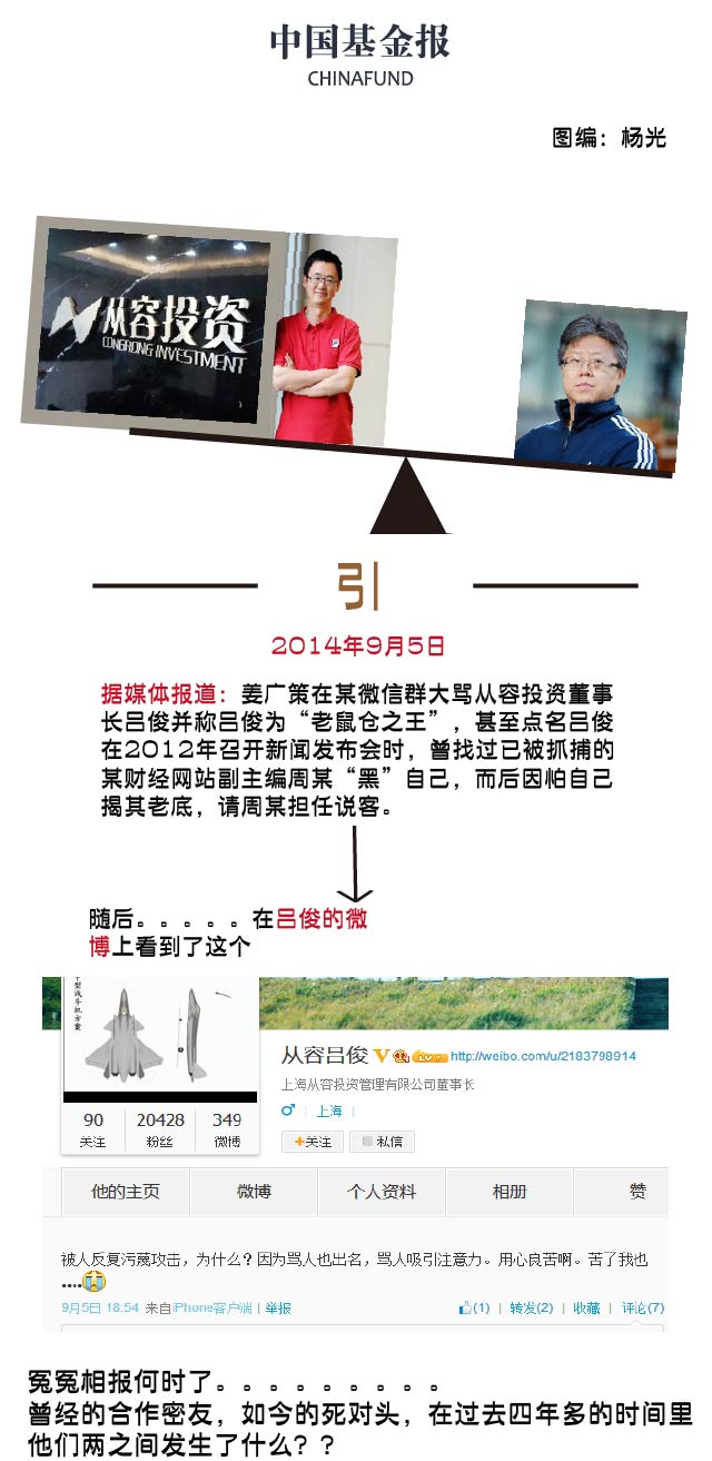 姜广策和吕俊两位私募基金经理近日再次爆发骂战,言辞激烈程度较以往有过之而无不及。此事前因后果如何?中国基金报《图说》栏目为您详解。