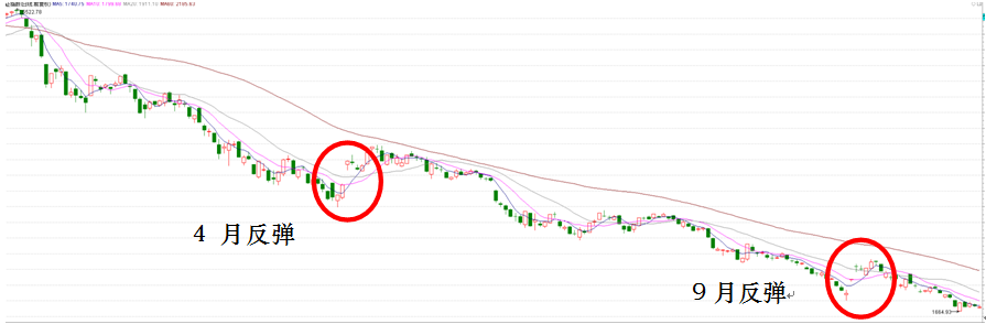 3、2008年以后,大盘就开始了吃人不吐骨头的行情,首先,是一段被60日线压制的下跌,接下来,在4月份出现了一次放量的跳空高开反弹。接下来,在9月又出现了第二次跳空高开反弹。在一年内,只要还有牛市思维,就会受到市场先生的教育。在2008年,无论深市沪市大小盘,大家齐刷刷的又跌了60%,而且指数成分股的跌幅遥遥领先。