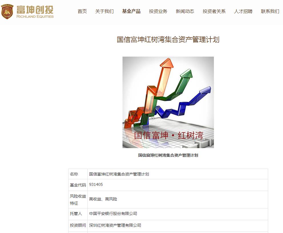 但是,基金君并没有找到红树湾投资的官网,而是找到了富坤创投的网站,上面写着“国信富坤红树湾集合资产管理计划”的产品信息。