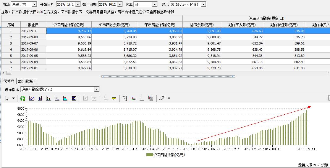 在指数稳步攀升,成交额不断放大的背景下,融资融券的余额也在快速增长,到9月11日已经达到9737.17亿元的年内新高,也是8月28日以来11日连增,并且近日有明显的增速加快。