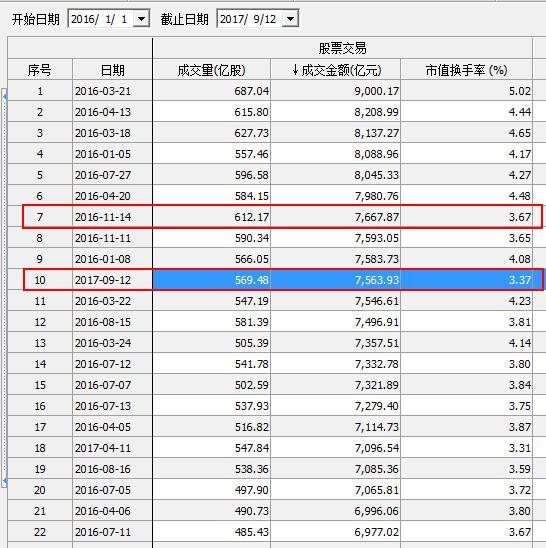 根据Wind资讯的证监会标准口径统计,今日两市成交额合计7563.93亿元,为2016年11月15日以来新高,也是今年成交额第二次突破7000亿元,上一次还是今年4月11日的7096.54亿元的成交。