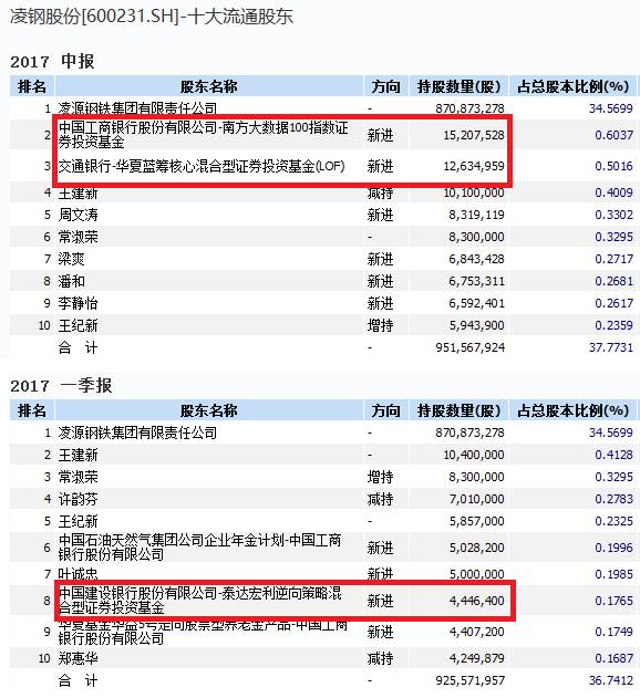 钢铁股中领涨的凌钢股份,被多只公募基金重仓持有,2017年一季度末,泰达宏利逆向策略基金重仓持有440多万股。