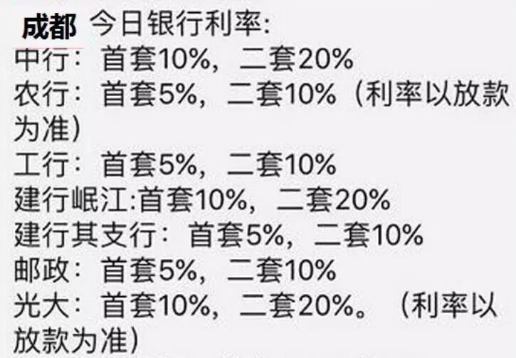 看看朋友圈流传的8月中旬成都房贷利率消息: