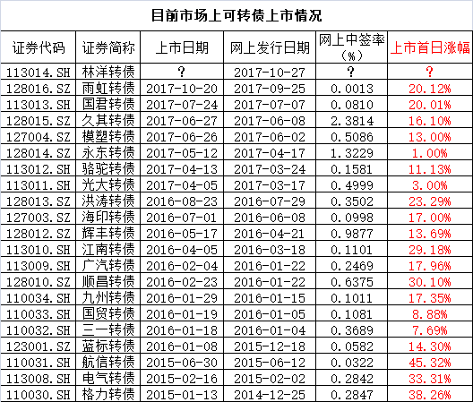 雨虹转债上市涨了20%,从2016年以来的情况,可转债上市首日的收益率大致在10%-30%之间,也就是中签了都是赚钱的。过去的情况大概是什么样子,目前市场上交易的可转债,上市首日没有负收益的。