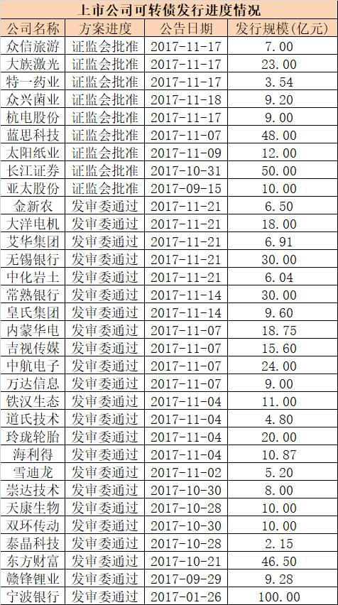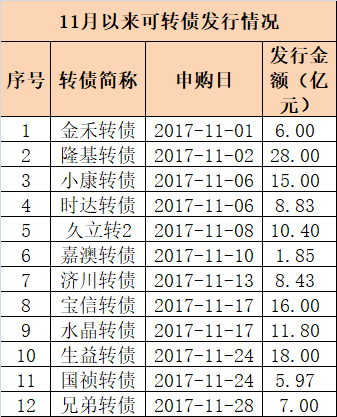 表1:11月份可转债发行表