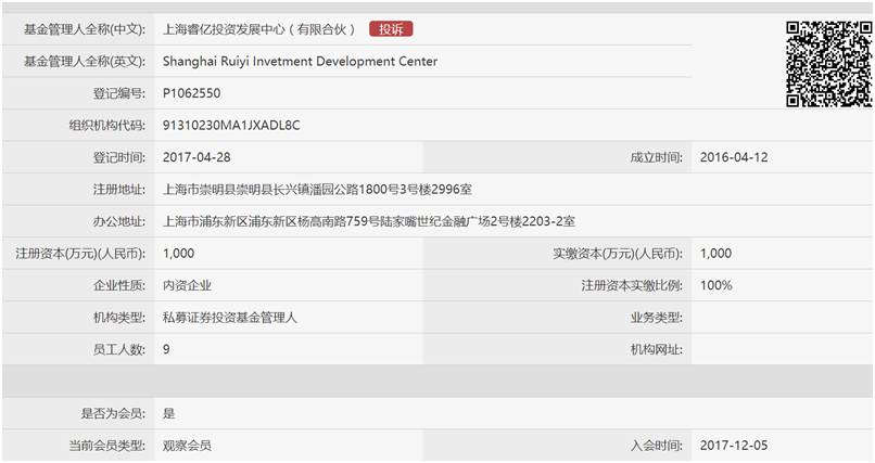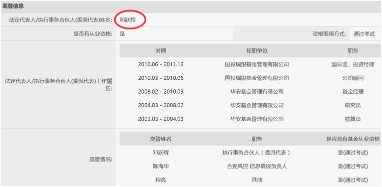 中国基金业协会信息显示,邓跃辉成立了上海睿亿投资,在今年4月份完成了备案登记。目前已有两只产品在中国基金业协会备案。