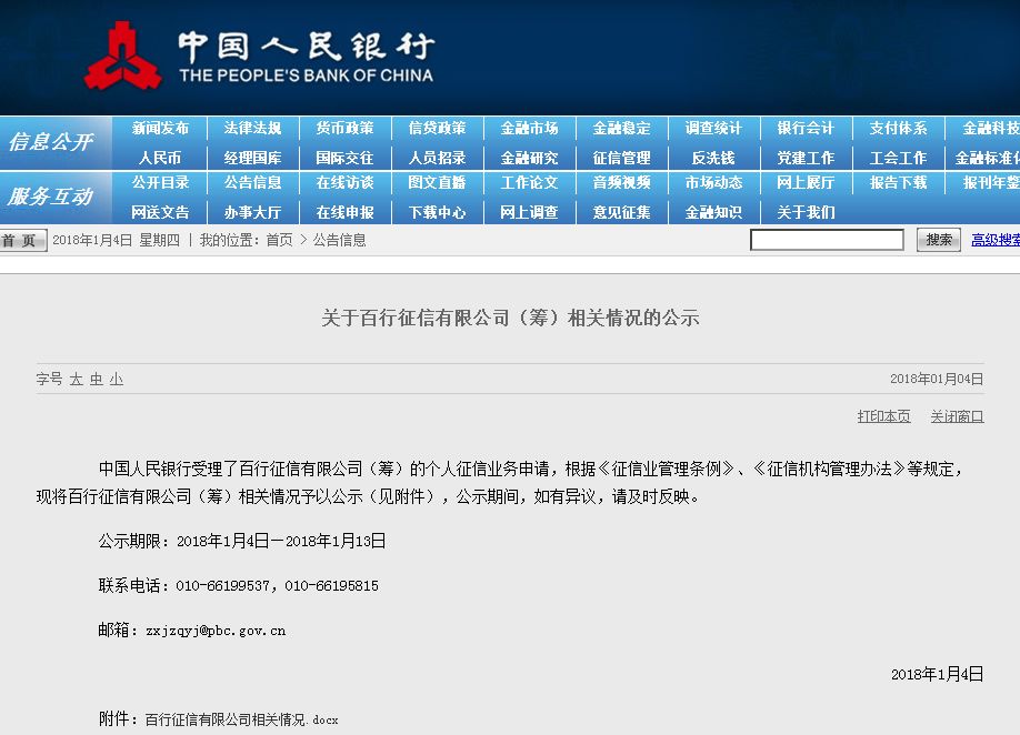 今天,中国人民银行网站公示了百行征信有限公司(筹)相关情况。公示指出,中国人民银行已受理了该公司的个人征信业务申请。也就是说,“信联”正式获得央行认可。