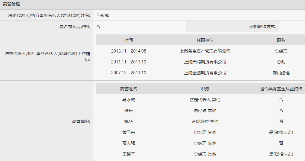 上海务生资产管理有限公司的备案信息显示,公司成立于2013年12月9日,备案于2015年1月29日,注册资本为1000万元,公司法定代表人为马永威。