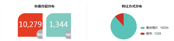 据股转系统官网统计显示,截至目前,新三板挂牌企业共11,623家,其中基础层10,279家,创新层1344家。采用集合竞价的为10294家,其中创新层竞价股票862只。采用做市的有1329家。