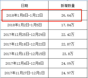 从2017年11月底以来,市场持续低迷,投资者新增开户人数也持续走低,上周算是一举扭转了最近一个多月的新增人数的下降趋势,并且有了近50%的环比增幅。