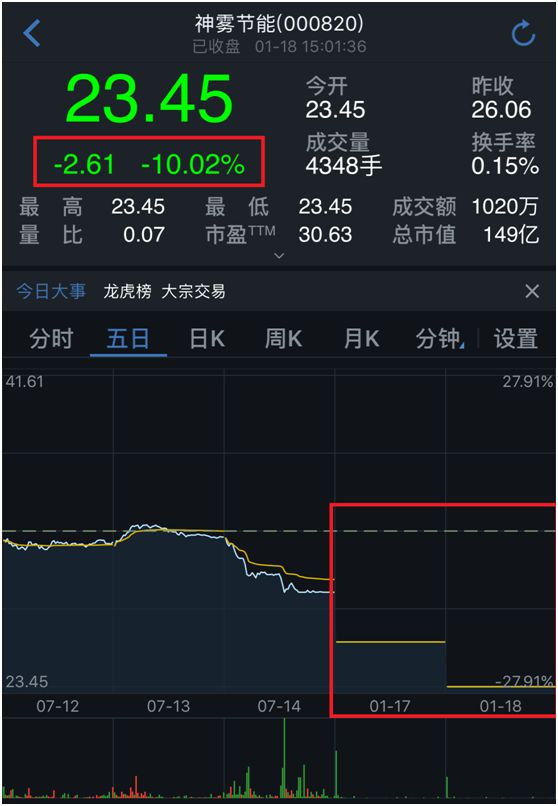 由于重组未获成功,截止今日收盘,神雾环保和神雾节能复牌后已连续两个跌停。