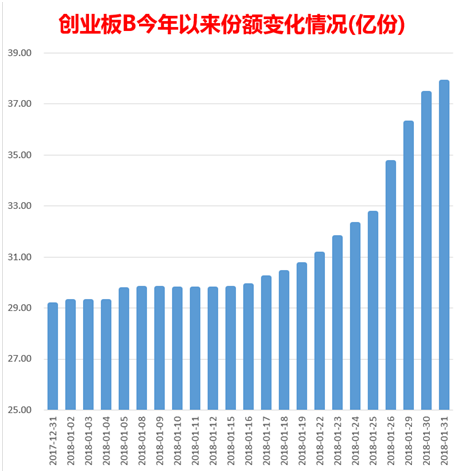 1月25日创业板B的份额为32.72亿份,到了31日激增到了37.86亿份;创业板A的份额也有同样的增长,因此创业板A和B在短短4个交易日合计增加了10.28亿份。