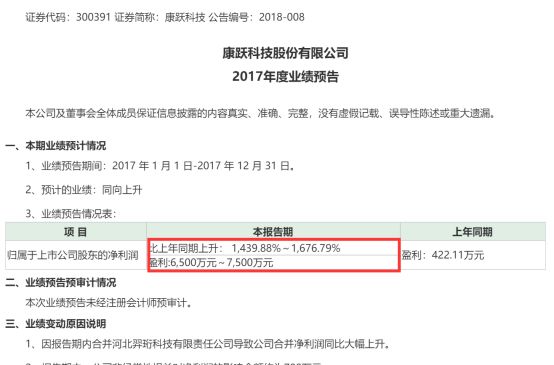 昨晚公布业绩的康跃科技净利润预增就超过1000%,盈利在6500万-7500万之间,不过,今日股价依然收在跌停板上。