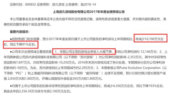 预计业绩下滑91%的如游久游戏今天股价也直接跌停,市值蒸发657.84亿元。其亏损原因最主要的在于主营游戏业务收入不行。