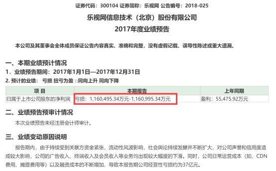 乐视网成为亏损额度最大的公司,2017年预亏116.1亿元,而在前三季度,净利润还只是亏16.52亿元,这意味乐视网在去年第四季度计入亏损约100亿元。今天乐视网也毫无意外的走出了第6个跌停,市值一天蒸发35.9亿元。