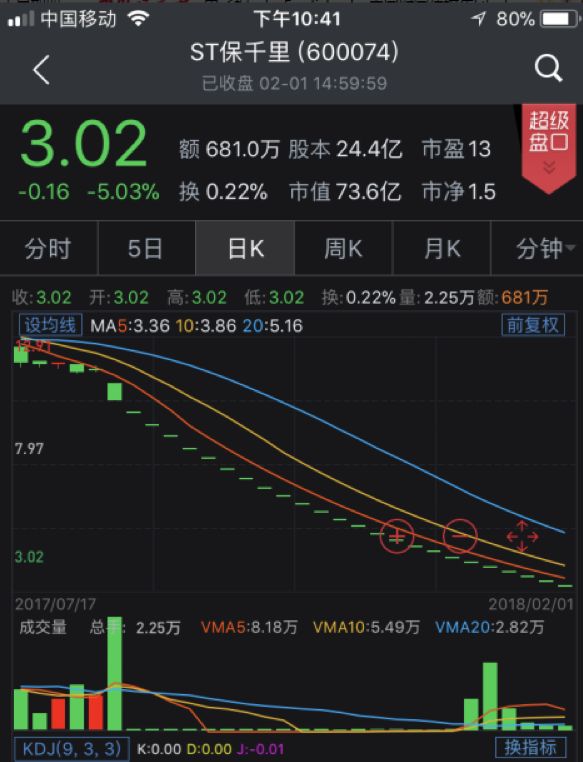 截止到2月1日,ST保千里刷新A股最长连续跌停纪录,连续第25个跌停。估计到2月2日开盘,有可能继续刷新跌停记录。