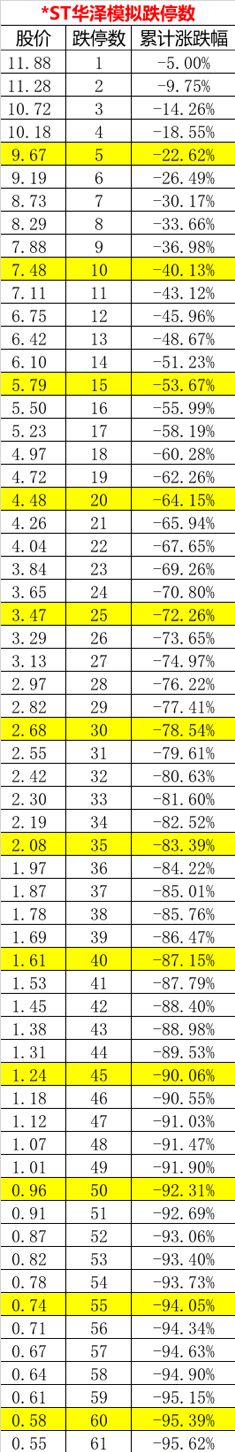 *ST华泽于2016年2月29日停牌,停牌前一日收盘价为12.5元,停牌至今又被下调估值,*ST华泽已缩水95.6%。这相当于*ST华泽61个跌停,也是被下调两次估值幅度最大的A股公司。