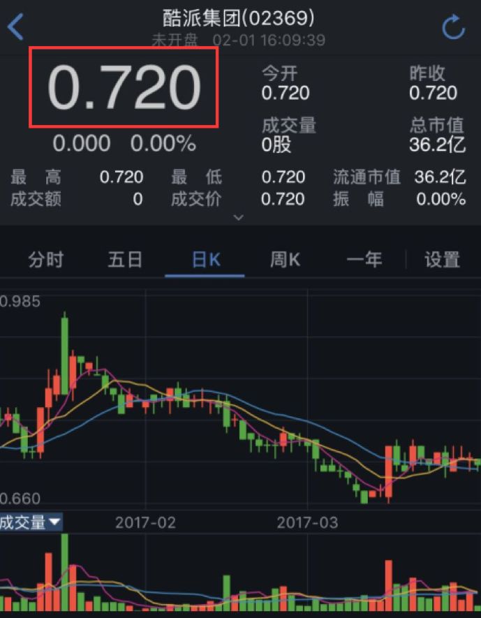 酷派集团于去年3月31日开始停牌,至今都未复牌,停牌前该股收盘价为0.72港元。受到股东乐视网危机波及,停牌中的酷派集团遭到内地一家基金公司大幅度估值调整,按照0.11港元进行估值,下调幅度高达85%。