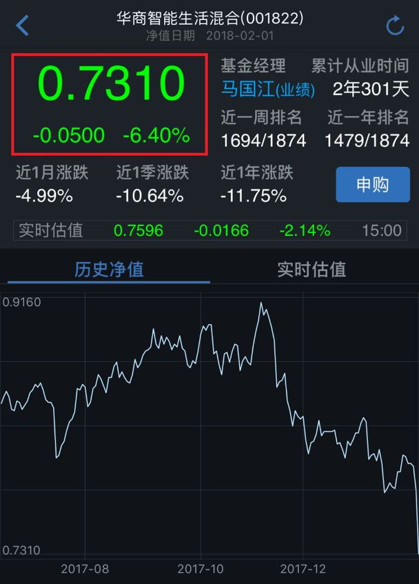 受到估值下调和昨日股市下跌的双重影响,华商智能生活昨日基金净值大跌了6.4%。