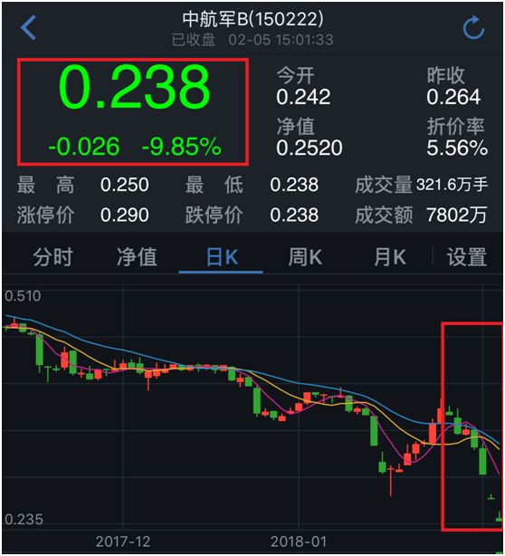 受到净值大跌和下折的双重影响,中航军B和成长B级的价格近期均出现大幅下跌。