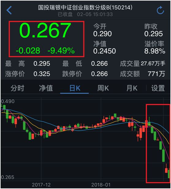 从以往分级基金表现来看,越是接近0.25元的下折阈值,B类份额的杠杆就越高,可以达到5倍左右,一旦指数下跌,B类份额的净值损失会很大,容易造成价格连续大跌,投资者需要注意其中的风险。
