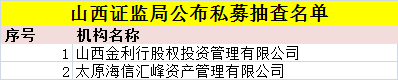 2月6日,山西证监局率先公布了私募基金现场检查对象随机抽查结果,包括山西金利行股权投资、太原海信汇峰资产两家机构。