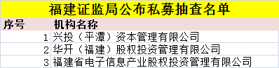 2月12日,福建证监局公布了抽查名单,包括福建省电子信息产业股权投资等3家机构。