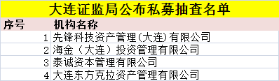 2月12日,大连证监局公布了抽查名单,包括先锋科技资产、泰诚资本等4家机构。