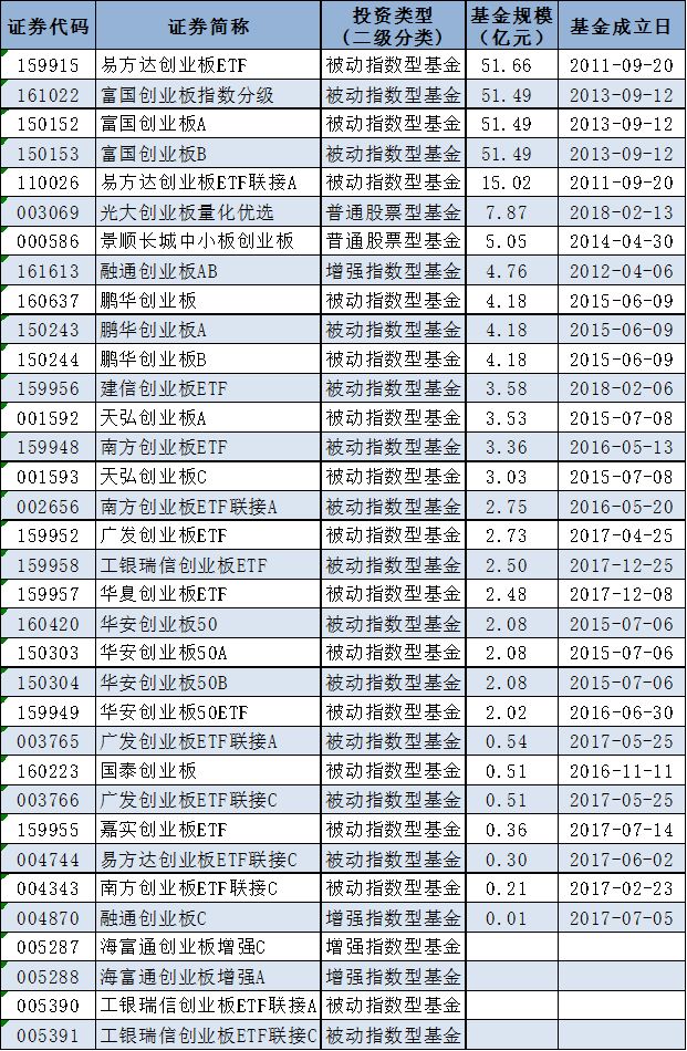 继华夏、工银瑞信两家基金公司于2017年底发行成立创业板ETF基金后,光大保德信创业板量化优选股票基金、建信创业板ETF、工银创业板ETF联接、海富通创业板综指增强基金等4只基金于今年1月初扎堆启动发行。