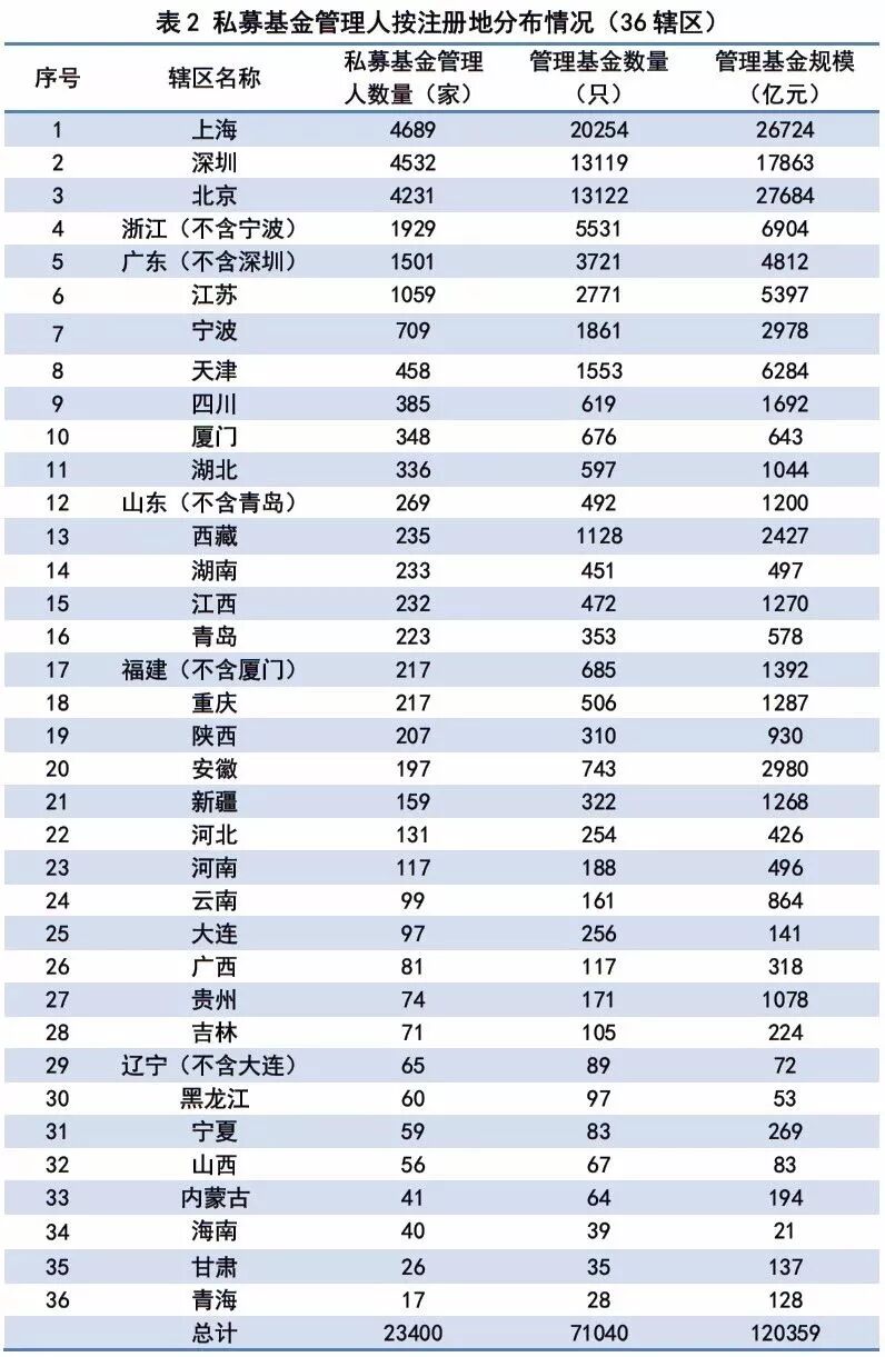 其中,北上深继续领跑全国。上海登记的管理人数量、备案基金数量都是最多的,管理人有4689家,基金数量达到20254只;北京的管理基金规模最大,达到27684亿元,其次是上海为26724亿元。