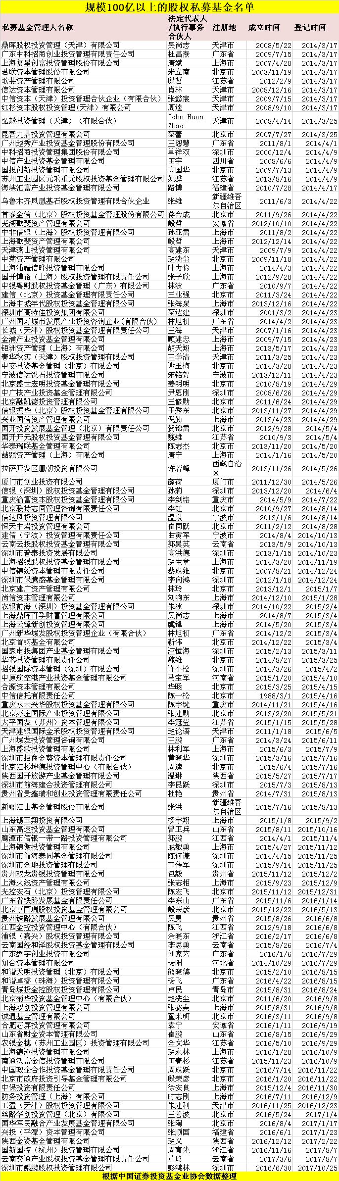 再看股权私募的情况,截至4月17日,规模在100亿以上的股权私募机构有123家,包括鼎晖投资、基石资本、弘毅投资、中信产业投资等。