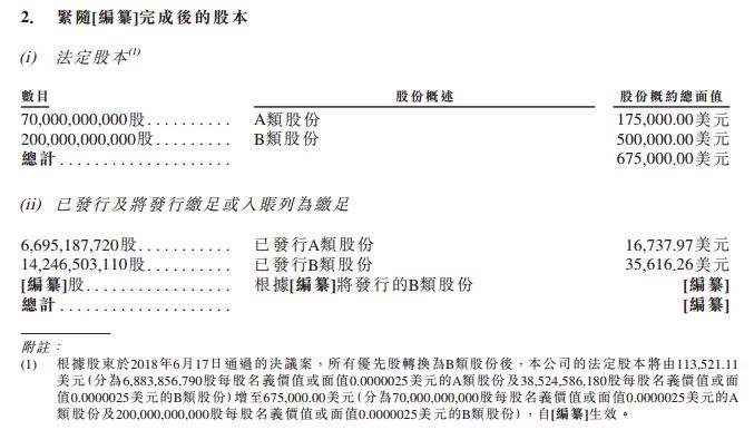 今天上午,小米公布了港交所聆讯后资料,招股说明书显示,小米开始接受认购,香港IPO筹资最高61.1亿美元。小米公司法定股本总面值为67.5万美元,由700亿A类股(价值17.5万美元)和2000亿B类股(价值50万美元)组成。