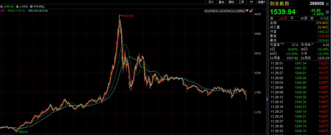 反观A股创业板指数,从2015年6月份高位下来,已经跌去了逾60%,风险已经有了大幅释放。截至6月20日,收报1563.79点。