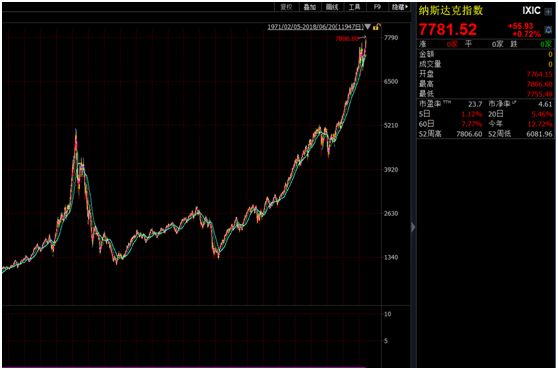 昨夜,美国纳斯达克指数再度上涨0.72%,收报7781.52点,创出历史新高。