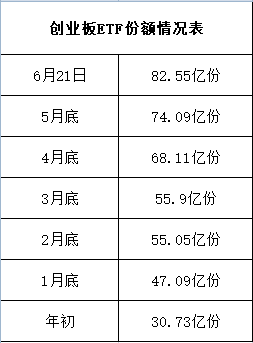 从创业板ETF来看,今年以来资金持续地净流入,并且势头不减。以易方达创业板ETF为例,今日最新份额达到82.55亿份,较昨日增长了约3亿份,较今年年初的30.73亿份,增幅翻倍,增长了51.82亿份。