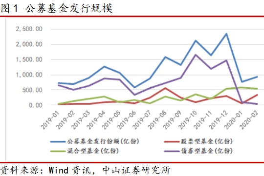 供给端增量资金有明显改善。公募基金2020年1-2月发行规模同比去年增加19.79%,其中股票型与混合型基金发行份额为去年同期的2.58倍,增量资金明显增加。此外,1月以来A股市场出现多只单日售罄的爆款基金,股票型与混合型基金的当前热度相对前期与去年同期有显著改善。特别的,股票型基金规模有上扬的趋势。