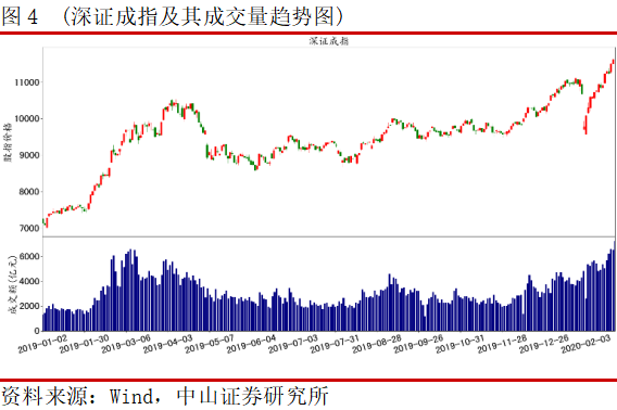 自2020年01月20日国务院下达重视新冠疫情与人民生命健康的指示以来,五部委联合或先后发声,颁布了融券业务限制卖出、强化金融支持防控新冠疫情等政策,强化政策宽松预期,部分对冲2020年春节期间积蓄的悲观情绪,弱化投资者一致悲观预期。春节后首个交易日罕见的出现超3200只个股跌停,但在中央介入后,新冠疫情的治愈率不断攀升、新增连续缩减、治疗方案不断改善,兼顾缓缴住房公积金、降息预期以及货币财政政策再宽松预期等利好消息,扭转了投资者悲观情绪,“宅家人”成为A股市场的生力军,“宅家不作为”在政策利好的刺激下,催生短期趋势性反弹行情。