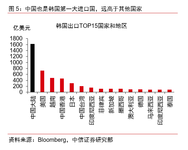 日本和韩国在全球贸易体系中占有重要地位,而日韩和中国的贸易关系紧密。主要体现在以下三个方面:1)日韩在全球的贸易份额中占有重要地位,中国是日本和韩国的第一大进口国;2)日韩也是主要的中间品出口国。从中间商品的依赖度来看,中国对日韩中间商品的依赖度较高;3)从产业链的角度,日韩与中国在贸易领域上中下游互相依托,是国内产业链不可忽视的一环。