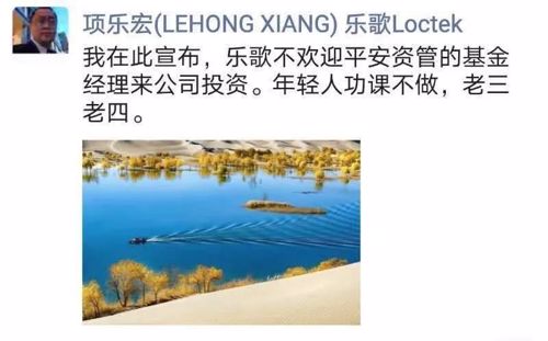 29日,上市公司乐歌股份董事长项乐宏发布了一条措辞严厉的朋友圈:乐歌不欢迎平安资管的基金经理来公司投资。年轻人功课不做,老三老四……