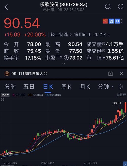 截至最新收盘,乐歌股份股价已经创下历史新高,报90.54元/股。