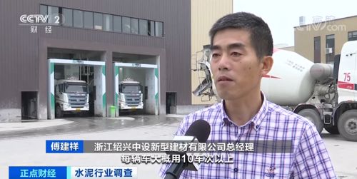 浙江绍兴中设新型建材有限公司总经理 傅建祥:每辆车大概用10车次以上,每个车12立方米。每个月的产量近几个月大概在10万立方米左右。