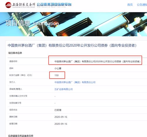 9月16日,据上交所官网,中国贵州茅台酒厂(集团)有限责任公司(简称“茅台集团”)拟面向专业投资者发行不超过150亿元公司债券(含150亿元)。